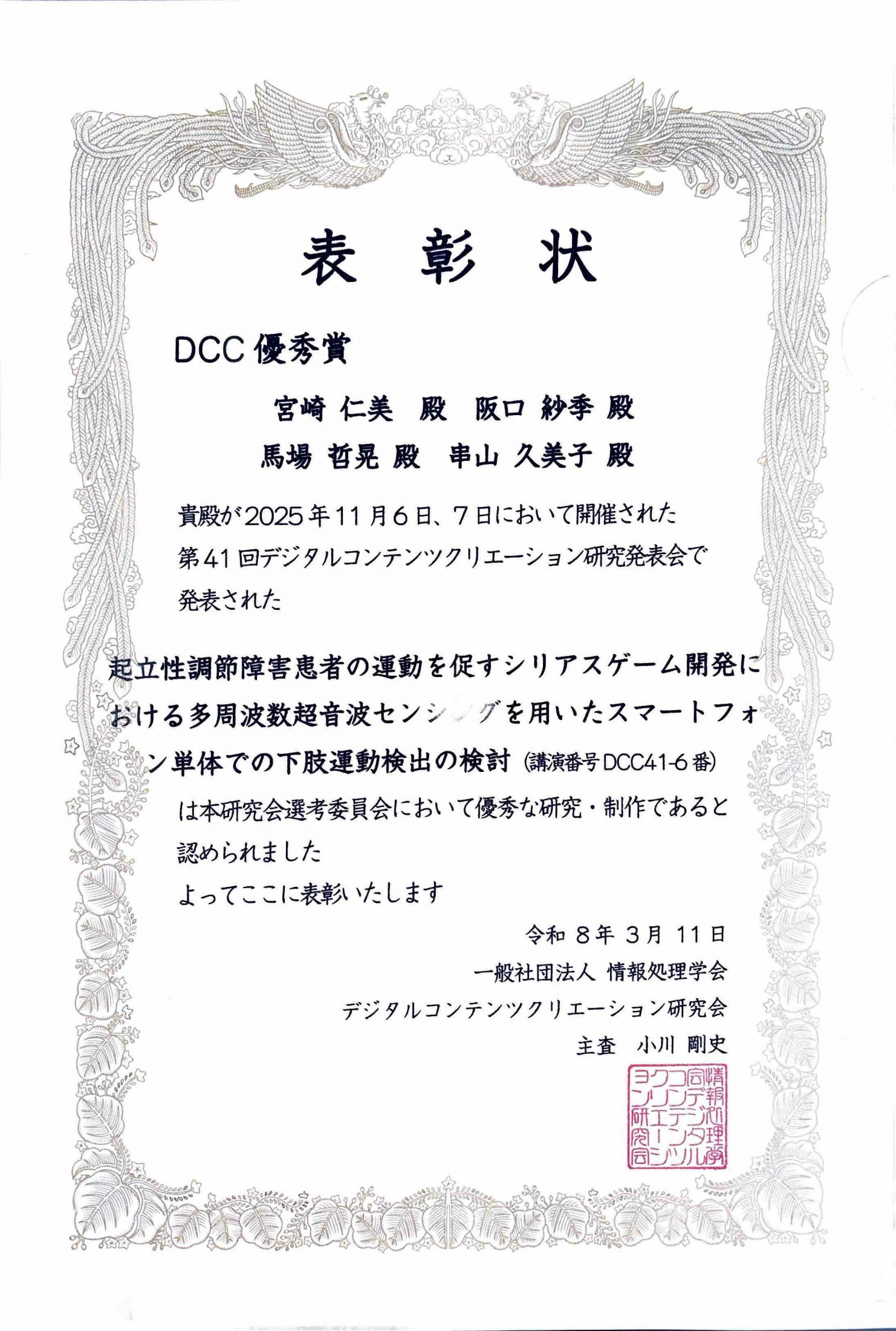 毎回のDCC研究会発表会で発表された優秀な研究・制作に対して授与されます。